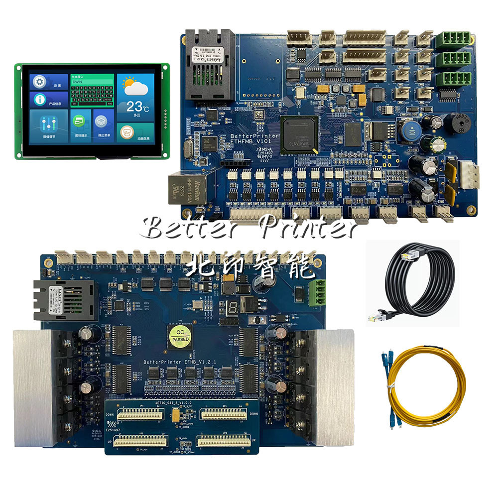 Gigabit network double head inkjet printing control system, application nozzle model: G5I, network cable to connect to the computer, fast transmission more speed.Mature solutions are available for photo machine inkjet printing, UV flatbed printing, textile heat transfer printing, white ink hot stamping printing, and dual station direct spraying.
